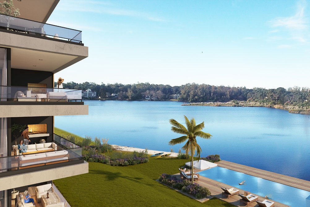 Piscina para adultos y otra para los más pequeños sobre el lago, gym, club house con parrillero, los garajes y cocheras individuales y El Muelle con playa; hacen del proyecto una obra arquitectónica de vanguardia.