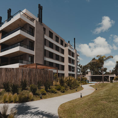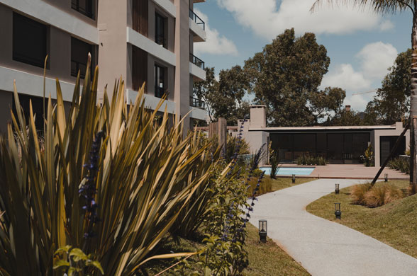 Un jardín de 4000 m² equipado con todo tipo de vegetación, alberga tres bloques bajos con 66 amplios apartamentos tipo loft, 1, 2 y 3 dormitorios, que incluyen unidades con jardines exclusivos y penthouses con amplias terrazas.